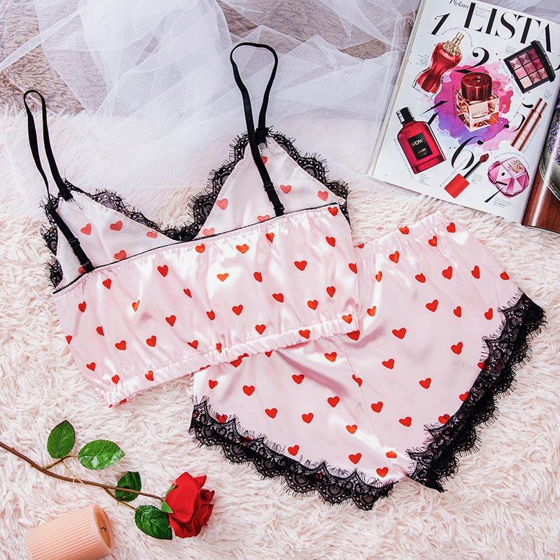 Ця розкішна атласна піжама рожевого кольору Лове з мереживом поєднує в собі елегантність і комфорт, створюючи ідеальний образ для романтичних ночей. Комплект з майки та шорт додасть шарму та затишку у вашому гардеробі.