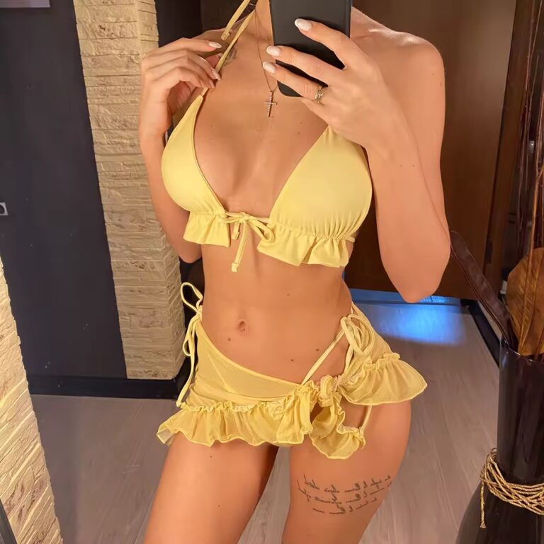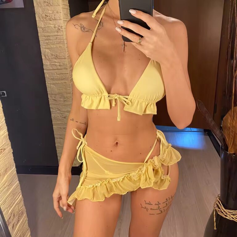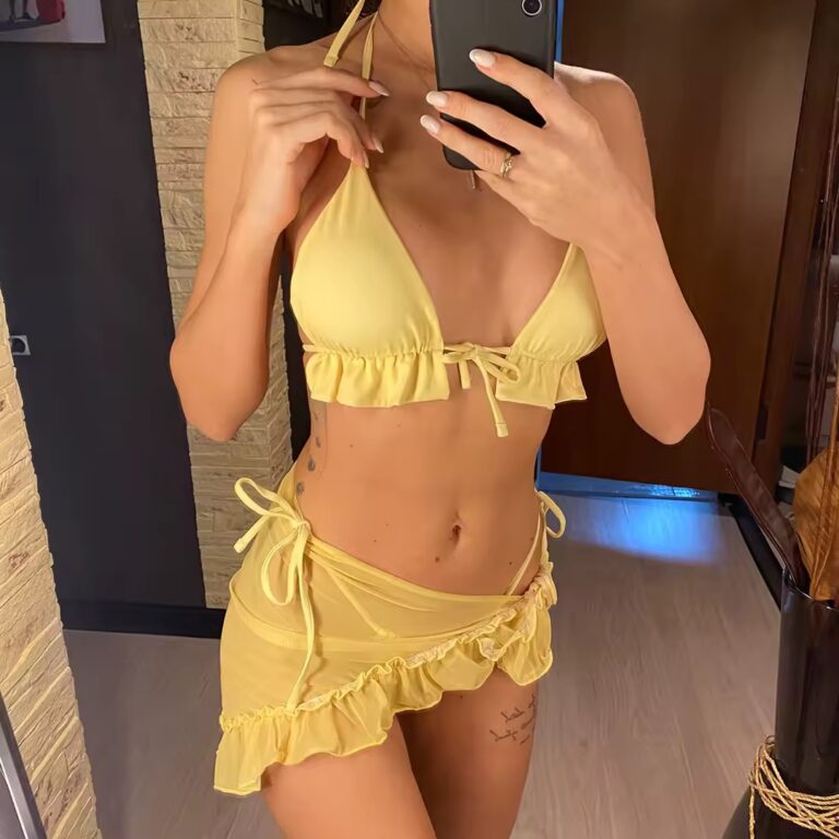 Стильний роздільний купальник із гладкою поверхнею та яскравим поєднанням двох кольорів — чудовий вибір для літнього відпочинку. Він підкреслює вашу фігуру та надає елегантності на пляжі чи біля басейну.