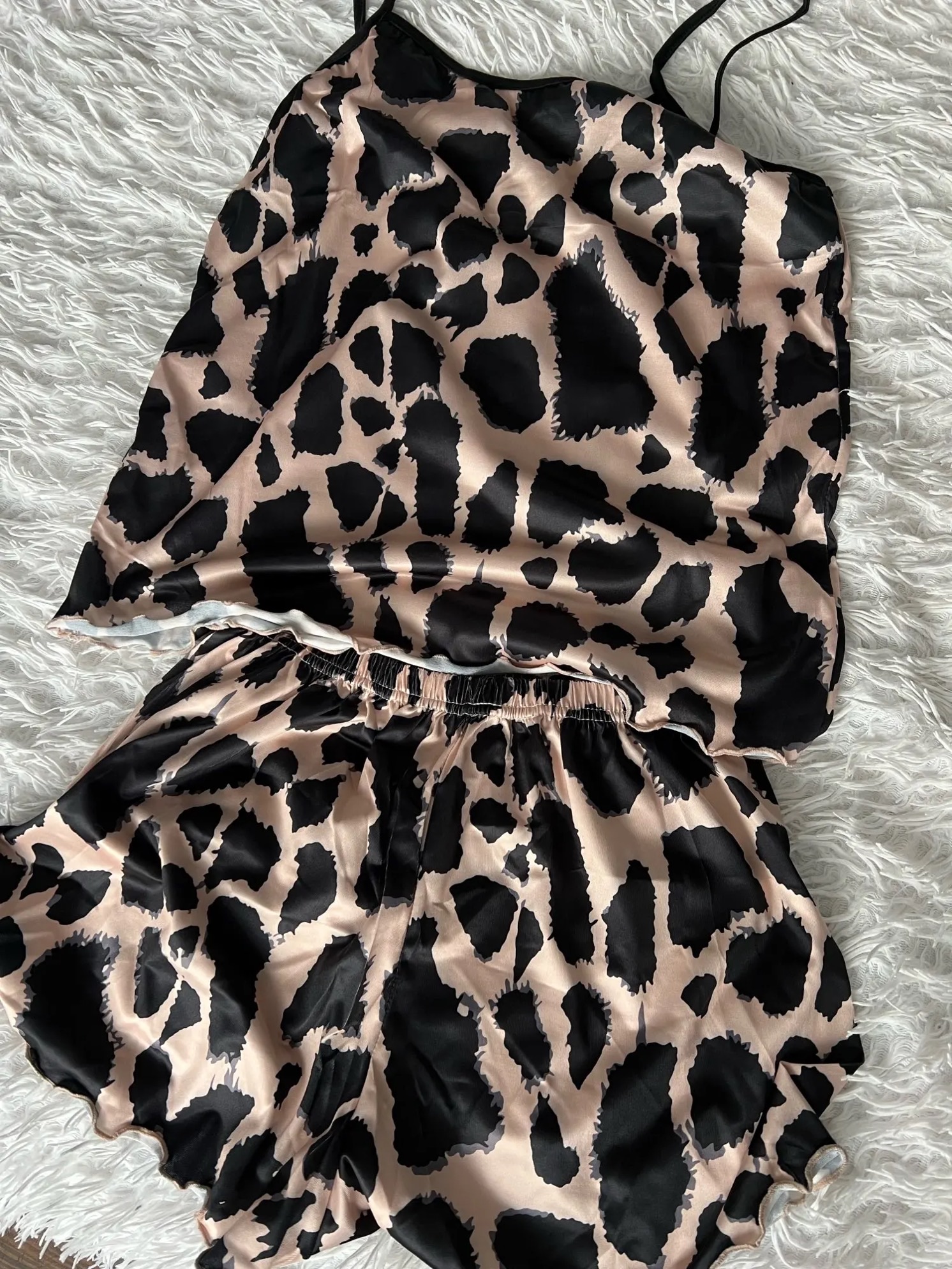 Елегантний вигляд: Атласна текстура і романтичний принт надають піжамі особливого шарму.